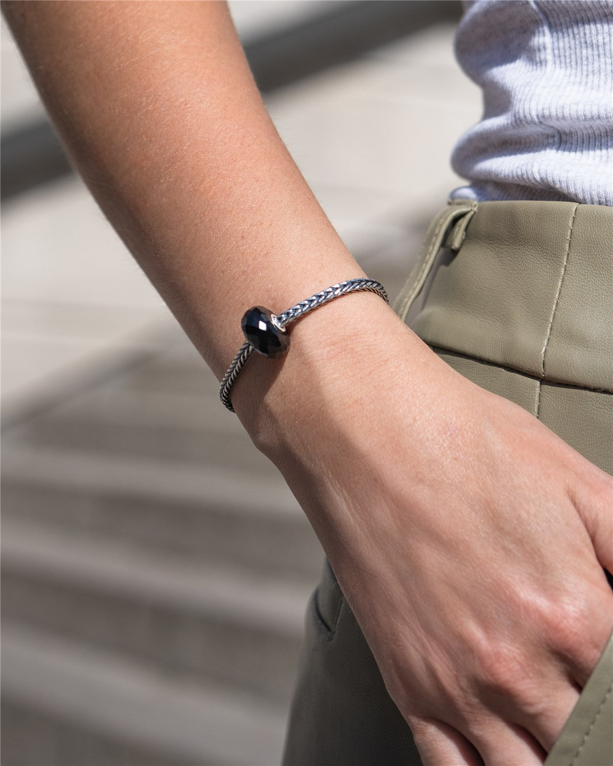 We recommend a half to a whole fingers space between wrist and bracelet. Measure your wrist, then add 2 cm longer than your tight wrist measurement so there is room for your beads, If you plan on wearing a full beaded bracelet, add an extra 0.4'' (Be aware, locks may vary slightly in size). In the end it is a matter of personal taste if you wish a closer or looser fit as well as how many beads you style your bracelet with.