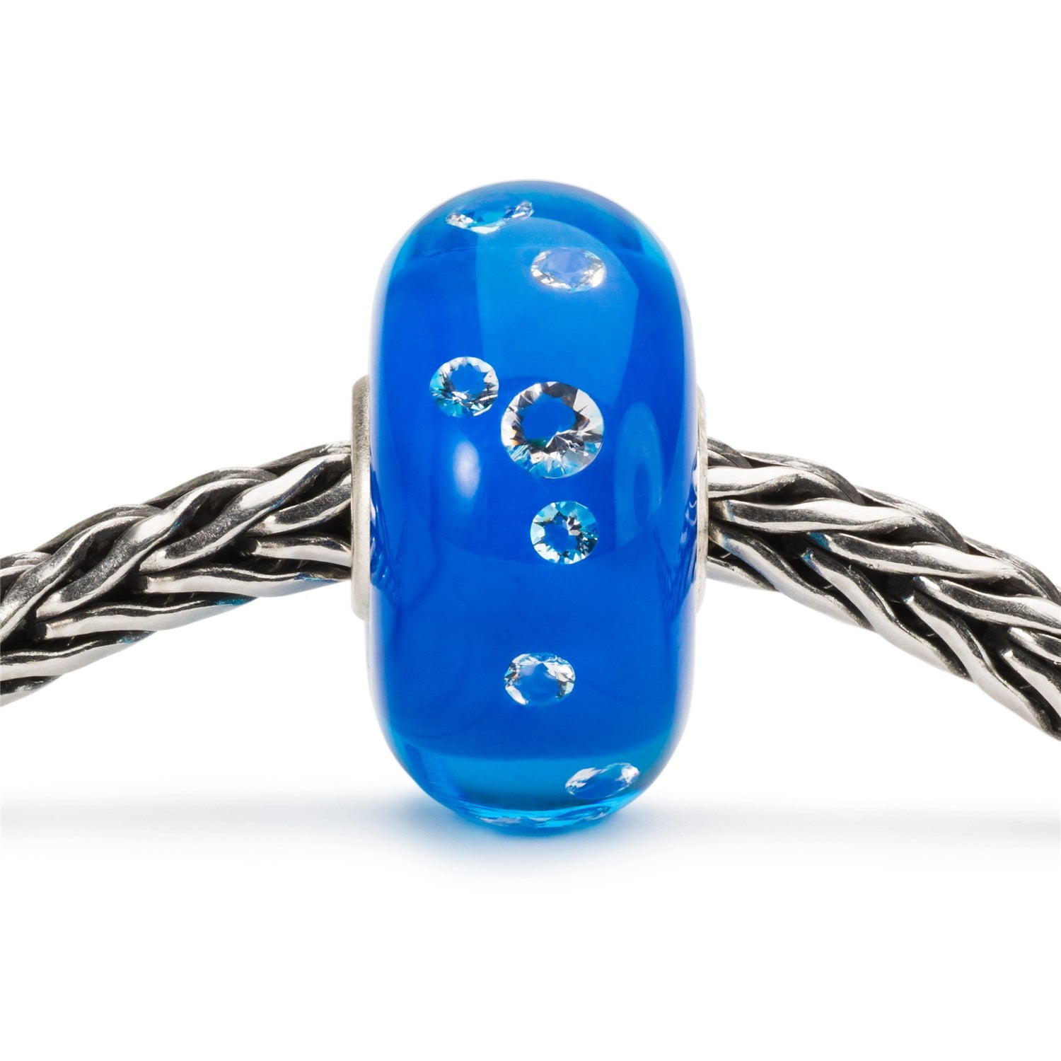 The Ocean Reflection bead is made of glass and contains a silver core. This bead has a special, glittering blue color and multi-faceted surface.