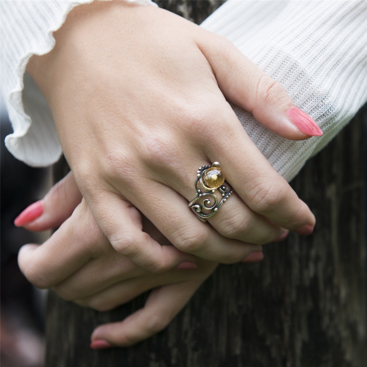 Citrine is said to increase, magnify and clarify personal power and energy. This makes it a gemstone of will, power and happiness. Here it is in a spectacular ring.