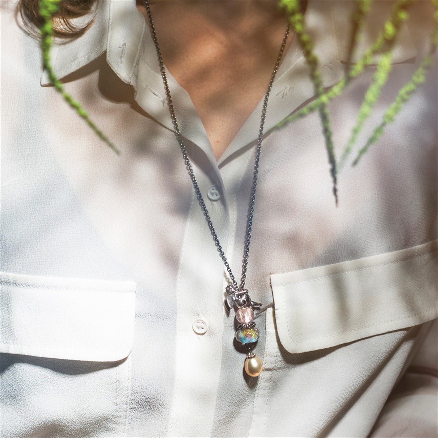 The You necklace includes fourteen types of vibrant natural gemstones combined in a bold, colorful and harmonizing piece.