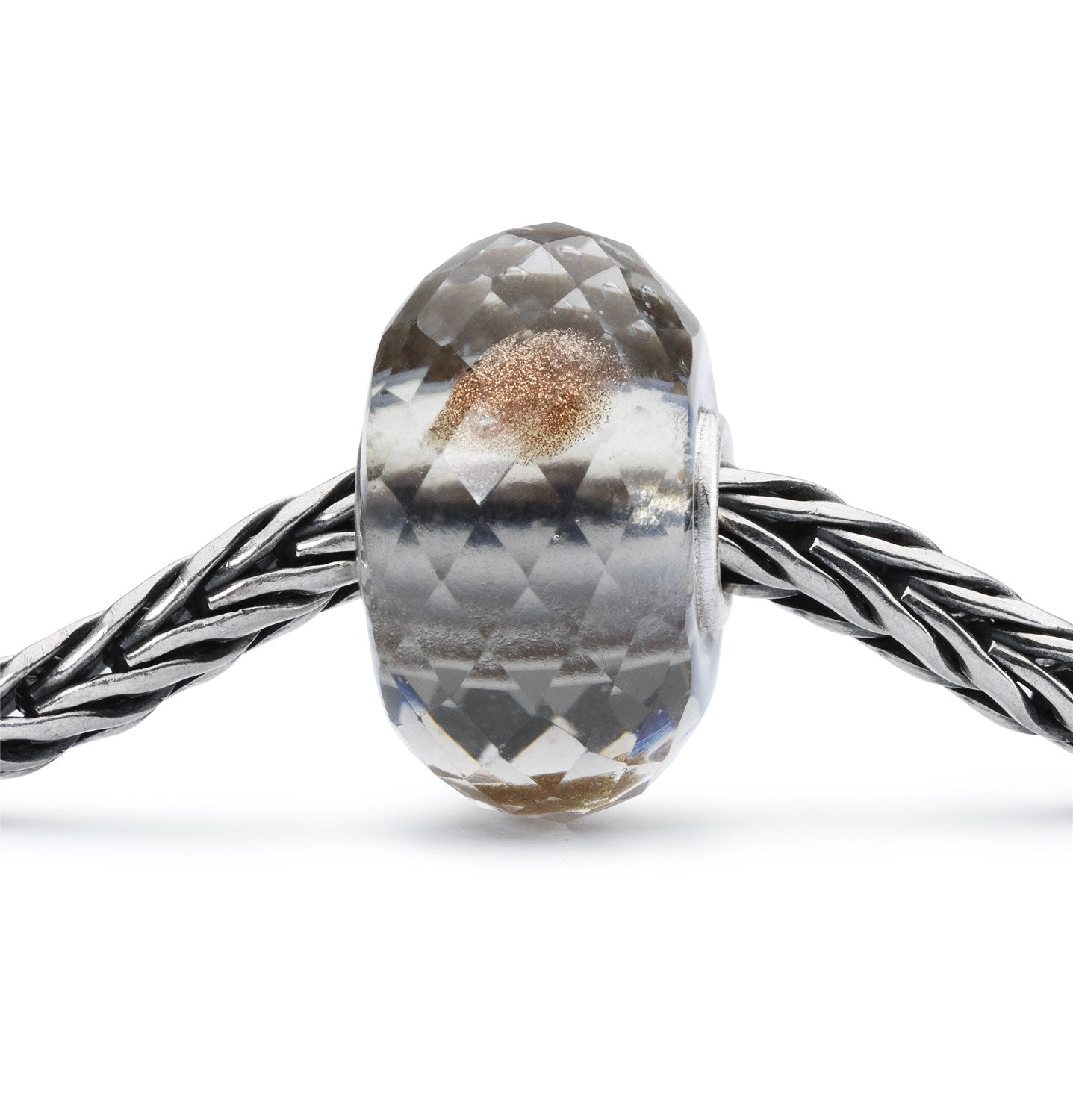 Celebrate daylight and stay warm in the cold season. Faceted glass bead in grey with sparkling copper inside.
